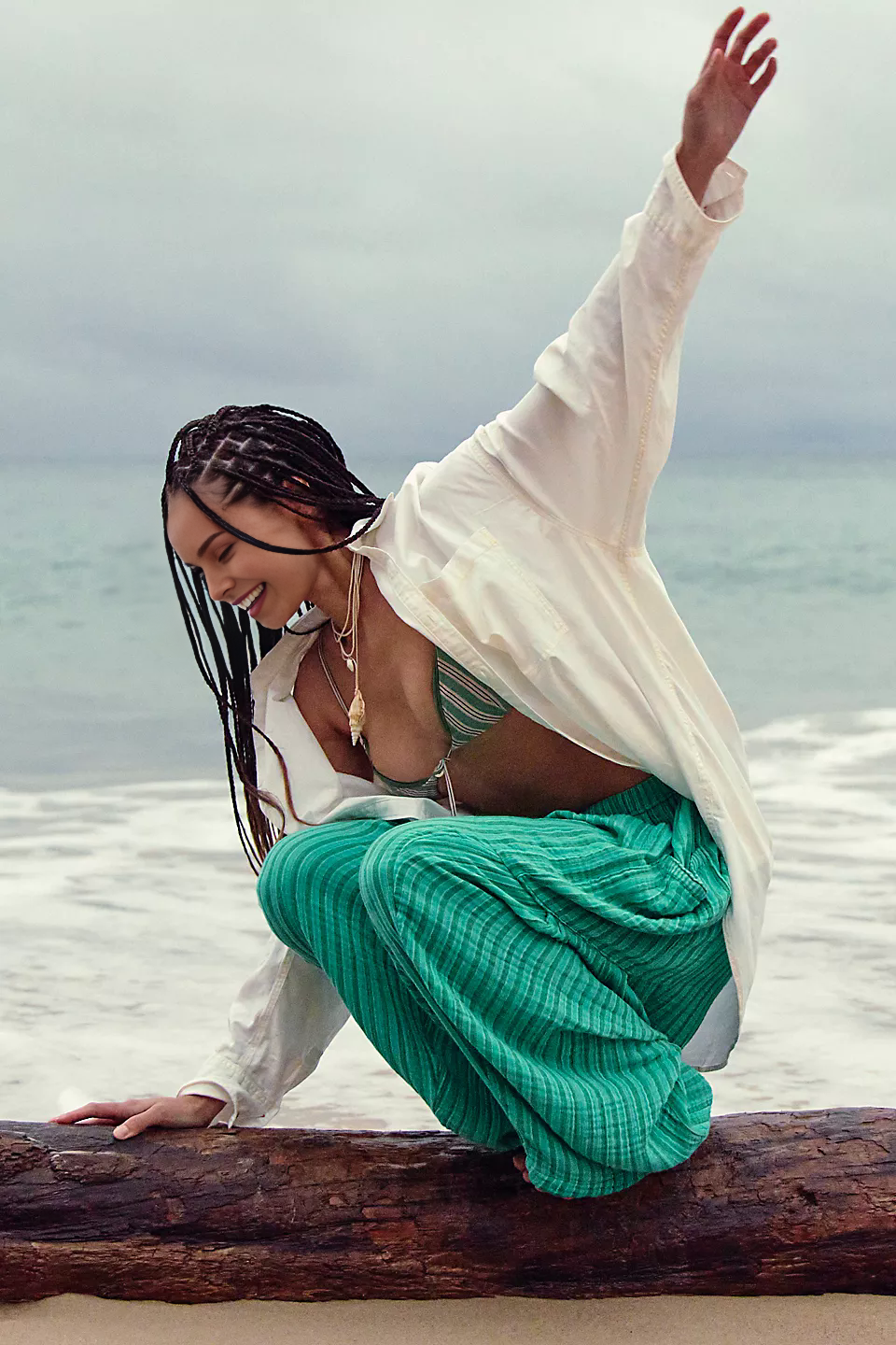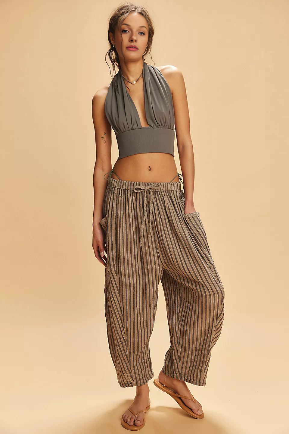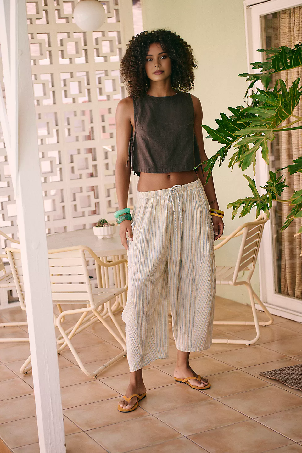 With their easy pull-on waist and laid-back silhouette, these pants are your new favorite for everyday ease. Featuring soft, breathable fabric and a yarn-dyed striped design, they’re made for everything from beach days to brunch dates.