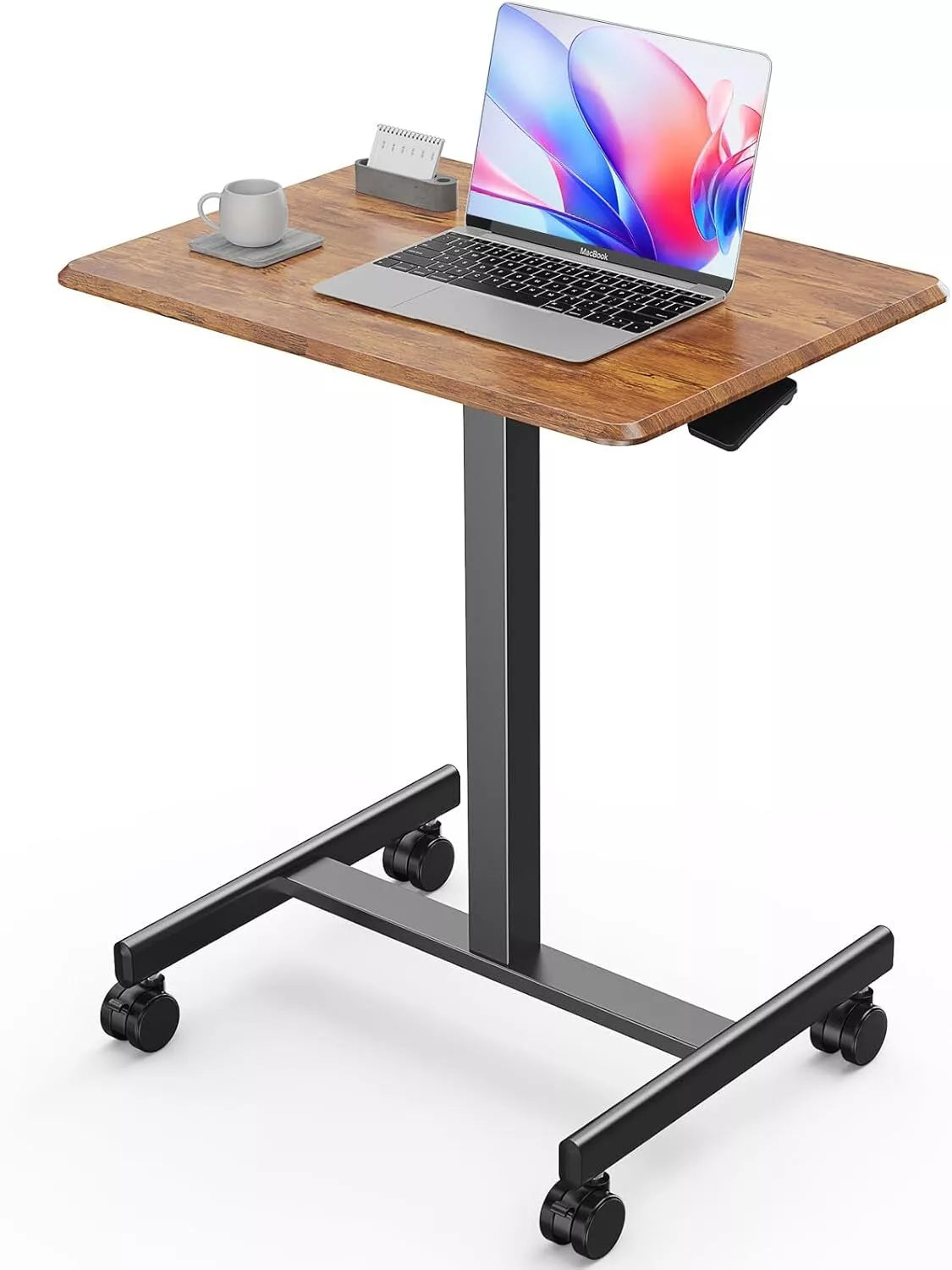 This mobile laptop desk rolls smoothly, adjusts in height, and fits tight spaces—perfect for home offices, couch work, or standing sessions. Simple, sleek, and ready when you are.