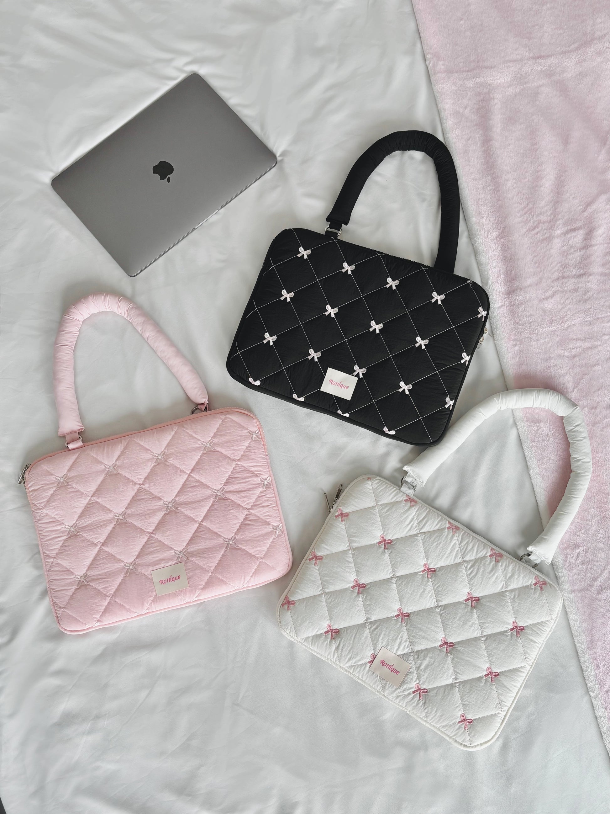 Add a touch of girly aesthetic to your tech essentials with the Pufflet Bow Laptop Sleeve! Its puffy exterior and soft, padded interior keeps your laptop safe, while the detachable strap offers two stylish ways to carry. Plus, the playful bow detail makes it a standout accessory!