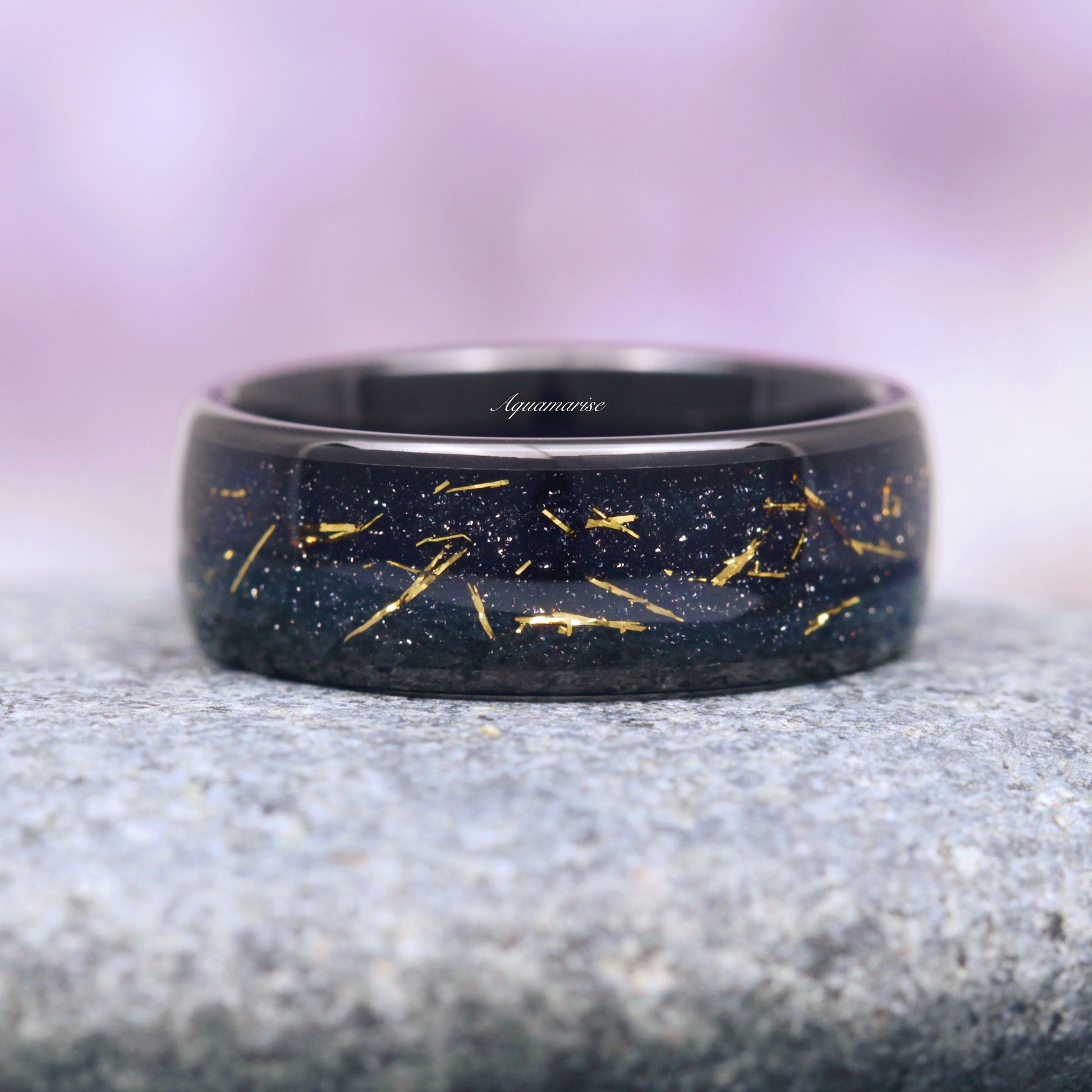 ►Her Ring: Crafted in luxurious 14K yellow gold vermeil, her band features a delicate design reminiscent of the twinkling stars in a midnight sky. The warm glow of the gold beautifully complements the starry pattern, creating a ring that is both enchanting and timeless. Please note that gold plating will naturally fade over time with regular wear. If this is a concern, we recommend choosing our sterling silver or solid gold jewelry options.