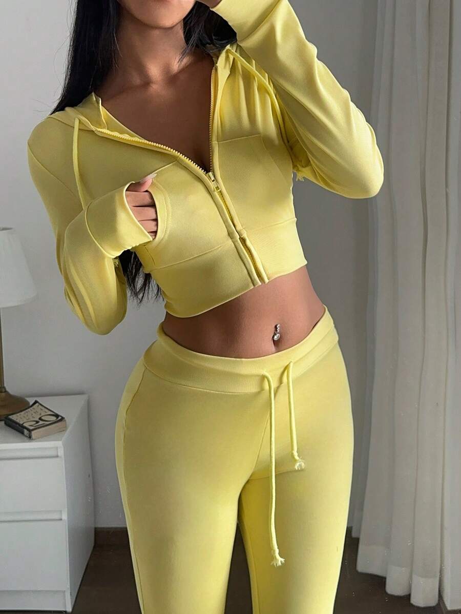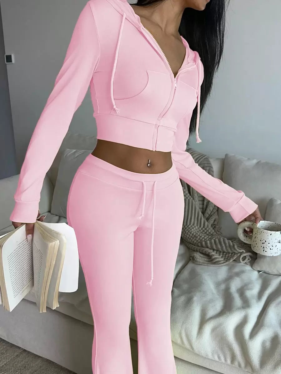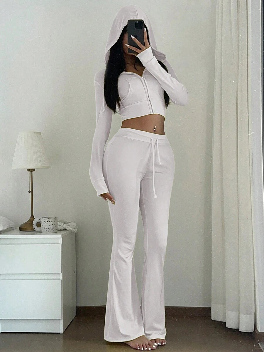 Zekeem 2pcs Women Set: Solid Color Hoodie & Wide Leg Pants